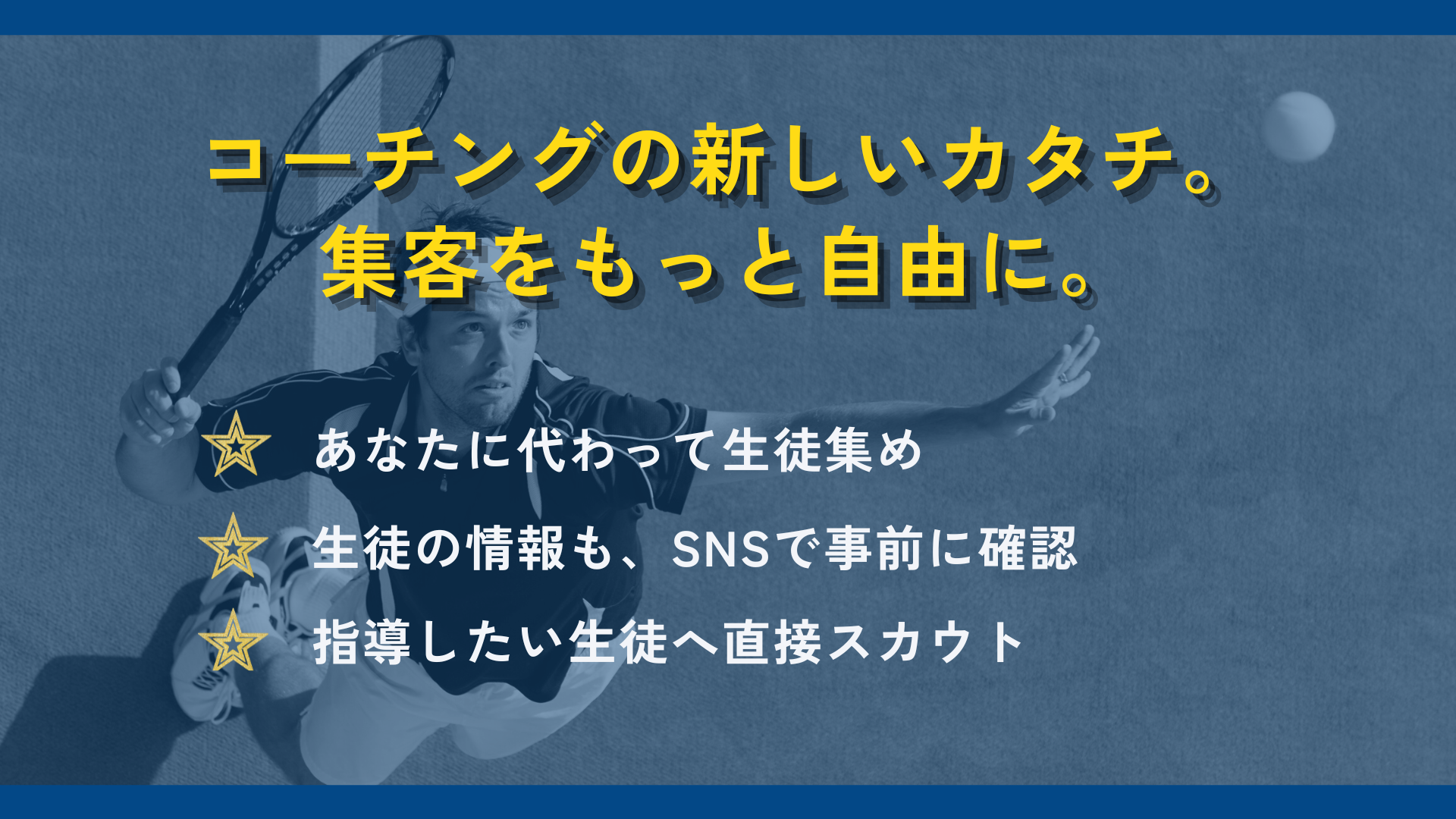 自分の空いてる時間にプライベートレッスンを受けたり、身近にあるスクールのコーチ情報を入手したり、ご自身のスポーツライフが広がります。 また、自分を生徒として登録することで、コーチさんから直接コンタクトがあるかもしれません。