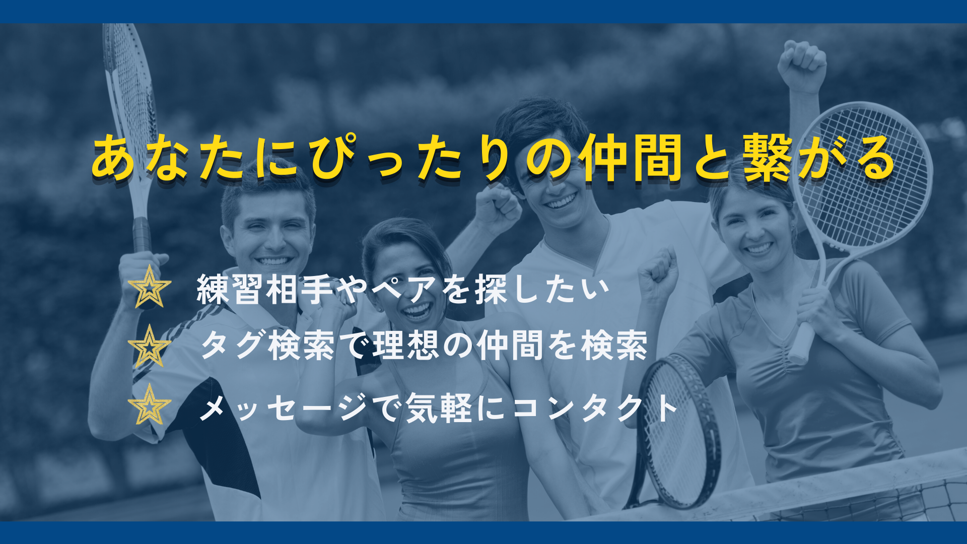 - 同じスポーツを楽しむ仲間を見つけたい。